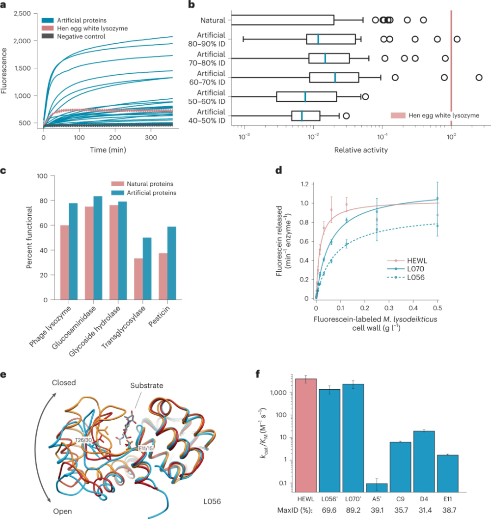 其中兩種人工酶能夠以與 HEWL 相當(dāng)?shù)幕钚苑纸饧毦募毎?,但它們的序列彼此只有約 18% 相同。這兩個序列與任何已知蛋白質(zhì)的同一性約為 90% 和 70%。