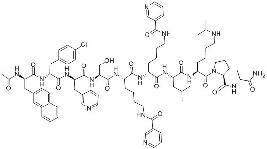 -(3-pyridinylcarbonyl)-d-lysyl-l-leucyl-n(sup6)-(1-methylethyl)-l-lysyl-l-pro;3-pyridinyl)-d-alanyl-l-seryl-n(sup6)-(3-pyridinylcarbonyl)-l-lysyl-n(sup6);lyl-;ANTIDE;AC-(D-NAL)-(D-P-CL-PHE)-(D-PAL)-SER-LYS(NICOTINOYL)-[D-LYS(NICOTINOYL)]-LEU-LYS(ISOPROPYL)-PRO-[D-ALA]-NH2;AC-D-ALA(2-NAPHTHYL)-D-PHE(4-CL)-D-ALA(3'-PYRIDYL)-SER-LYS(NICOTINOYL)-D-LYS(NICOTINOYL)-LEU-LYS(ISOPROPYL)-PRO-D-ALA-NH2;AC-D-2-NAL-P-CHLORO-D-PHE-BETA-(3-PYRIDYL)-D-ALA-SER-LYS(NICOTINOYL)-D-LYS(NICOTINOYL)-LEU-LYS(ISOPROPYL)-PRO-D-ALA-NH2;Antide Acetate |
