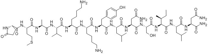 PYR-MAVKKYLNSILN-NH2 PYR-MET-ALA-VAL-LYS-LYS-TYR-LEU-ASN-SER-ILE-LEU-ASN-NH2 [PYR16] VASOACTIVE INTESTINAL PEPTIDE (16-28) (HUMAN, BOVINE, PORCINE, RAT) (PYR16)-VIP (16-28) (HUMAN, BOVINE, PORCINE, RAT) [PGLU16]-VIP (16-28), PORCINE GLP-MET-ALA-VAL-LYS-LYS-TYR-LEU-ASN-SER-ILE-LEU-ASN-NH2 [GLP16]-VASOACTIVE INTESTINAL PEPTIDE (16-28), HUMAN, PORCINE, RAT [GLP16] VASOACTIVE INTESTINAL PEPTIDE (16-28), PORCINE [GLP16] VIP (16-28), PORCINE (Pyr16)-VIP (16-28) (huMan, Mouse, rat) |