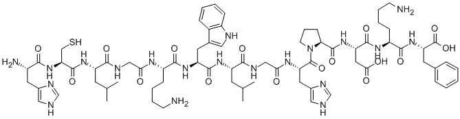 LIPOPHILIN (139-151) (DEPALMITOYLATED) (HUMAN, BOVINE, DOG, MOUSE, RAT); HIS-CYS-LEU-GLY-LYS-TRP-LEU-GLY-HIS-PRO-ASP-LYS-PHE; H-HIS-CYS-LEU-GLY-LYS-TRP-LEU-GLY-HIS-PRO-ASP-LYS-PHE-OH; H-HIS-CYS-LEU-GLY-LYS-TRP-LEU-GLY-HIS-PRO-ASP-LYS-PHE-OH (HUMAN, BOVINE, DOG, MOUSE, RAT); PLP (139-151) (DEPALMITOYLATED) (HUMAN, BOVINE, DOG, MOUSE, RAT); PLP (HUMAN, BOVINE, DOG, MOUSE, RAT); MYELIN PROTEOLIPID PROTEIN (139-151); MYELIN PROTEOLIPID PROTEIN (139-151) (DEPALMITOYLATED) (HUMAN, BOVINE, DOG, MOUSE, RAT) |