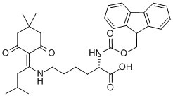 FMOC-N-EPSILON-1-(4,4-DIMETHYL-2,6-DIOXOCYCLOHEX-1-YLIDENE)-3-METHYLBUTYL-L-LYSINE;FMOC-LYSINE(IVDDE)-OH;FMOC-LYS(IVDDE)-OH;FMOC-L-LYS(IVDDE)-OH;N-ALPHA-(9-FLUORENYLMETHYLOXYCARBONYL)-N-EPSILON-[1-(4,4-DIMETHYL-2,6-DIOXOCYCLOHEX-1-YLIDENE)-3-METHYLBUTYL]-L-LYSINE;N-ALPHA-(9-FLUORENYL)METHOXYCARBONYL)-N-EPSILON-[1-(4,4-DIMETHYL-2,6-DIOXOCYCLOHEXYLIDENE-3-METHYLBUTYL]-L-LYSINE;N-ALPHA-FMOC-N-EPSILON-1-(4,4-DIMETHYL-2,6-DIOXOCYCLOHEX-1-YLIDENE)-3-METHYLBUTYL-L-LYSINE;N-α-Fmoc-N-ε-1-(4,4-dimethyl-2,6-dioxocyclohex-1-ylidene)-3-methylbutyl-L-lysine |