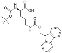 BOC-D-ORN(FMOC)-OH;BOC-D-ORNITHINE(FMOC)-OH;BOC-N-DELTA-FMOC-D-ORNITHINE;N-ALPHA-TERT-BUTYLOXYCARBONYL-N-DELTA-(9-FLUORENYLOXYCARBONYL)-D-ORNITHINE;N-ALPHA-T-BUTYLOXYCARBONYL-N-EPSILON-(9-FLUORENYLMETHYLOXYCARBONYL)-D-ORNITHINE;N-ALPHA-T-BUTOXYCARBONYL-N-DELTA-(9-FLUORENYLMETHOXYCARBONYL)-D-ORNITHINE;N-ALPHA-T-BUTOXYCARBONYL-N-SIGMA-(9-FLUORENYLMETHOXYCARBONYL)-D-ORNITHINE;N-α-Boc-N-δ-Fmoc-D-ornithine |