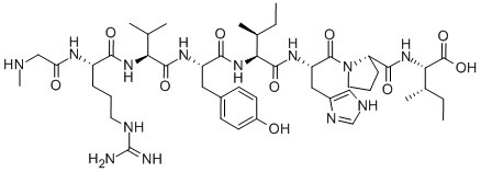 ARILESIN;SAR-ARG-VAL-TYR-ILE-HIS-PRO-ILE-OH;SAR-ARG-VAL-TYR-ILE-HIS-PRO-ILE;[SAR1, ILE8]ANGIOTENSIN II, HUMAN;(SAR1,ILE8)-ANGIOTENSIN II;ANGIOTENSIN II [SAR1 ILE8];[Sar1,Ile8]angiotensin II【mouse】;[Sar1,Ile8]angiotensin II【rabbit】 |