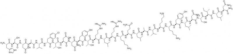 His-Ser-Asp-Ala-Val-p-chloro-D-Phe-Thr-Asp-Asn-Tyr-Thr-Arg-Leu-Arg-Lys-Gln-Leu-Ala-Val-Lys-Lys-Tyr-Leu-Asn-Ser-Ile-Leu-Asn-NH2 | H-His-Ser-Asp-Ala-Val-p-chloro-D-Phe-Thr-Asp-Asn-Tyr-Thr-Arg-Leu-Arg-Lys-Gln-Leu-Ala-Val-Lys-Lys-Tyr-Leu-Asn-Ser-Ile-Leu-Asn-NH2 |