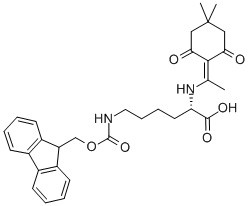 N-ALPHA-1-(4,4-DIMETHYL-2,6-DIOXOCYCLOHEX-1-YLIDENE)ETHYL-N-EPSILON-FMOC-L-LYSINE;N-ALPHA-1-(4,4-DIMETHYL-2,6-DIOXOCYCLOHEX-1-YLIDENE)ETHYL-N-EPSILON-(9-FLUORENYLMETHOXYCARBONYL)-L-LYSINE;N-ALPHA-(4,4-DIMETHYL-2,6-DIOXOCYCLOHEX-1-YLIDENE)ETHYL-N-EPSILON-(9-FLUORENYLMETHYLOXYCARBONYL)-L-LYSINE;DDE-LYS(FMOC)-OH;DDE-LYSINE(FMOC)-OH;DDE-L-LYS(FMOC)-OH;N-α-1-(4,4-dimethyl-2,6-dioxocyclohex-1-ylidene)ethyl-N-ε-Fmoc-L-lysine;N-a-1-(4,4-dimethyl-2,6-dioxocyclohex-1-ylidene)ethyl-N-e-Fmoc-L-lysine |