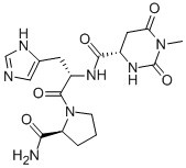 L-Prolinamide, N-[(hexahydro-1-methyl-2,6-dioxo-4-pyrimidinyl)carbonyl]-L-histidyl-, (S)-;L-Prolinamide, N-[[(4S)-hexahydro-1-methyl-2,6-dioxo-4-pyrimidinyl]carbonyl]-L-histidyl- (9CI);TA 0910;(4S)-N-[(2S)-1-[(2S)-2-Carbamoylpyrrolidin-1-yl]-3-(3H-imidazol-4-yl)-1-oxopropan-2-yl]-1-methyl-2,6-dioxo-1,3-diazinane-4-carboxamide;Taltirelin;2,6-dioxo-4-pyrimidinecarbonyl-L-histidyl-;L-Prolinamide,(4S)-hexahydro-1-methyl-;(6S)-N-[(S)-1-[[(2S)-2-Carbamoylpyrrolizino]carbonyl]-2-(1H-imidazole-4-yl)ethyl]-2,4-dioxo-3-methylhexahydropyrimidine-6-carboxamide |