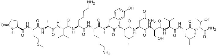 Pyr-Met-Ala-Val-Lys-Lys-Tyr-Leu-Asn-Ser-Val-Leu-Thr-NH2 | Pyr-Met-Ala-Val-Lys-Lys-Tyr-Leu-Asn-Ser-Val-Leu-Thr-NH2 |